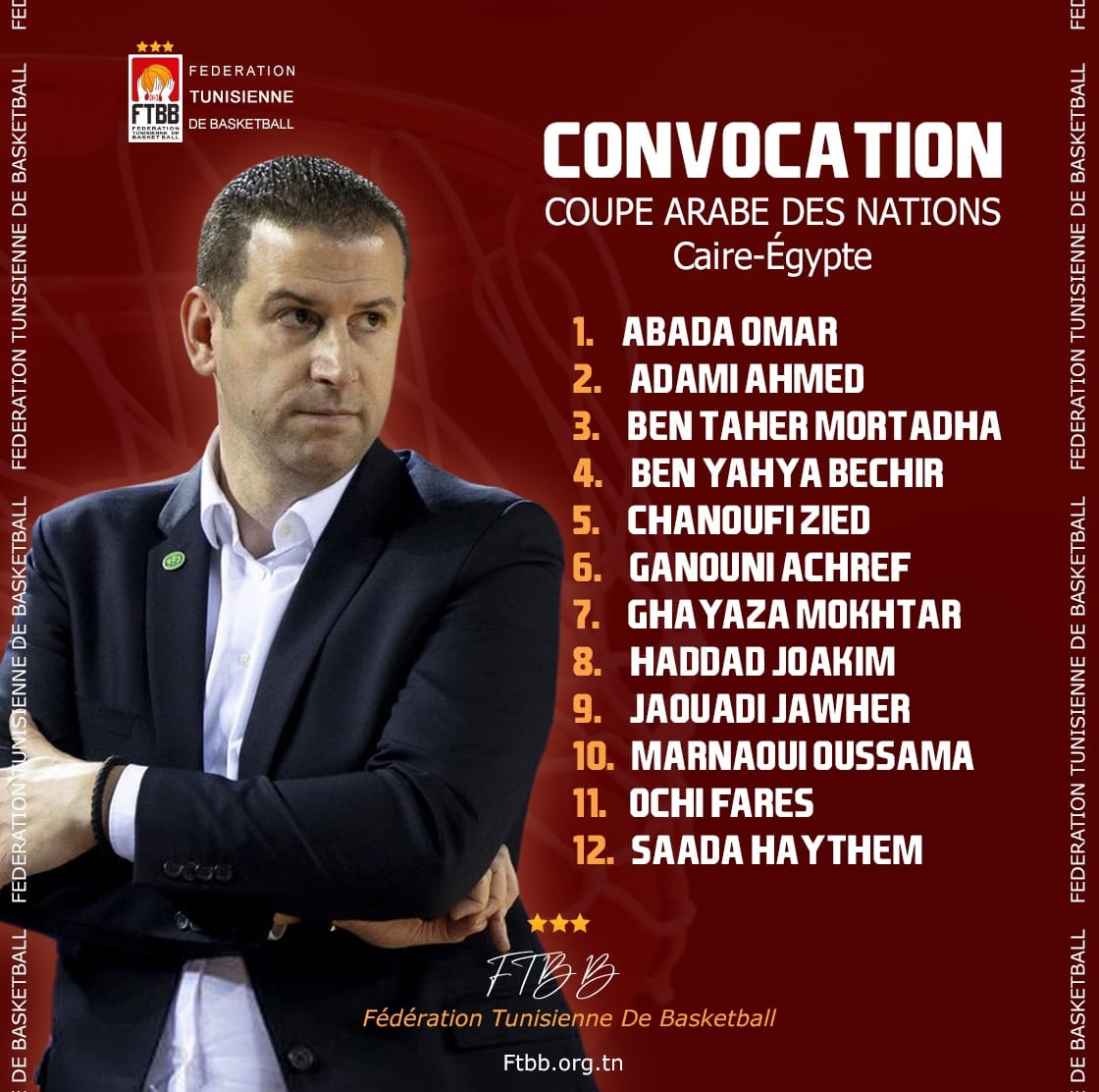 La Fédération Tunisienne de Basket-ball a communiqué la liste des joueurs de la sélection nationale convoqués pour disputer la Coupe Arabe des Nations en Egypte.