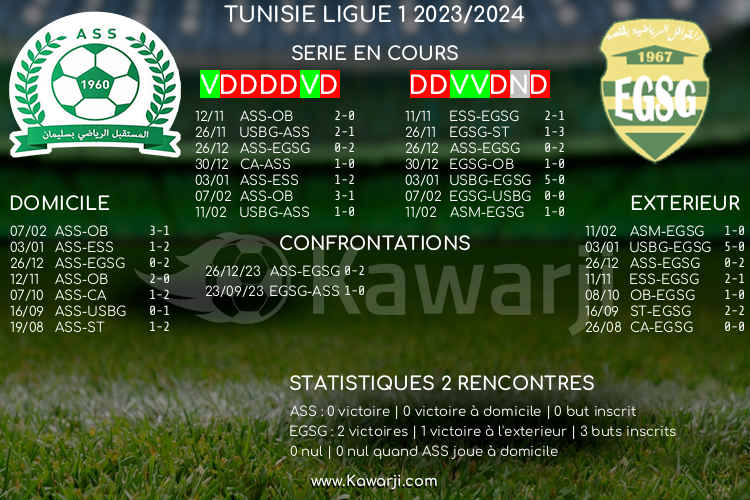 Avant les rencontres prévues ce mardi pour le compte de la 12ème journée de Ligue 1 tunisienne 2023-2024, voici l'historique et les statistiques relatifs à ces confrontations :