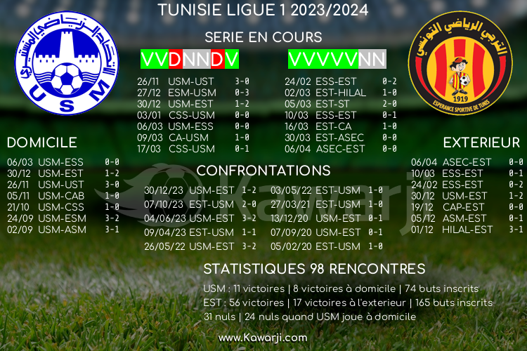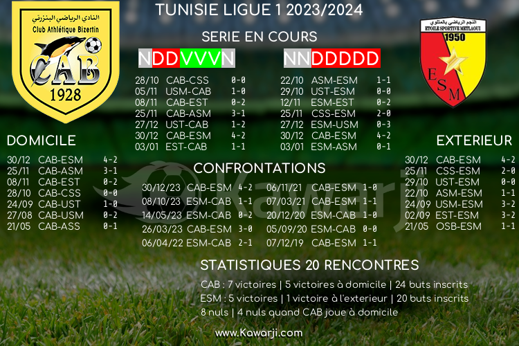 Avant les rencontres prévues ce samedi pour le compte de la 13ème journée du groupe B en Ligue 1 tunisienne 2023-2024, voici l'historique et les statistiques relatifs à ces confrontations :
