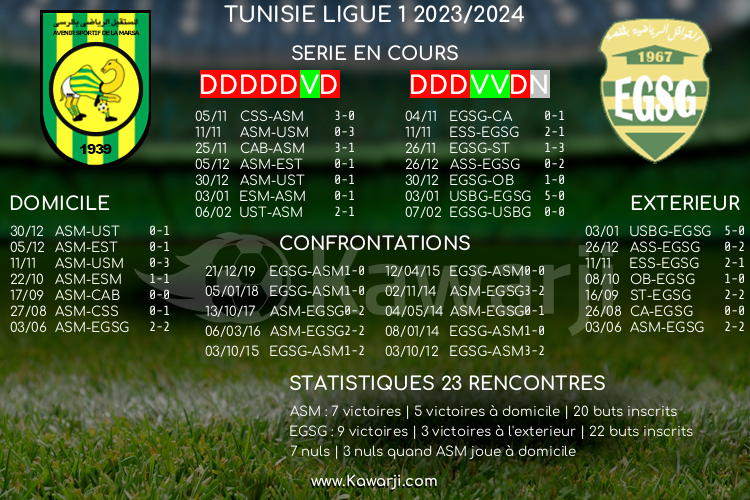 Avant les rencontres prévues ce dimanche pour le compte de la 2ème journée de la phase de play-out en Ligue 1 tunisienne 2023-2024, voici l'historique et les statistiques relatifs à ces confrontations :