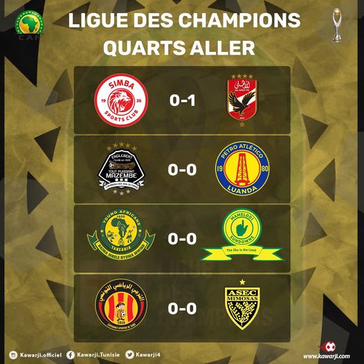 Voici les résultats des matches des quarts de finale aller de la Ligue des Champions africaine :