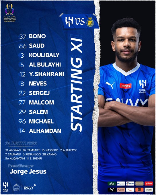 Suivez avec nous sur Kawarji à partir de 20h30 l'évolution du score du match de la demi-finale de la Super Coupe d'Arabie Saoudite entre Al Hilal et Al Nassr :
