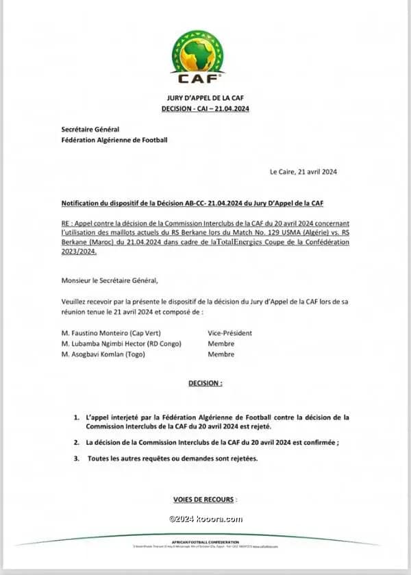 La Confédération Africaine de Football aura un dossier épineux à gérer dans les prochaines heures.