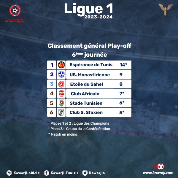 Ligue 1-P.Off6 : L'Espérance au Bardo, le Club Africain reçoit le Club Sportif Sfaxien
