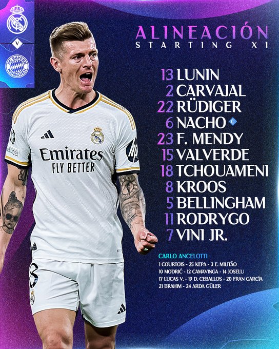 Suivez avec nous sur Kawarji à partir de 20h00 l'évolution du score de la Demi-finale retour de la Ligue des Champions entre le Real Madrid et le Bayern Munich :