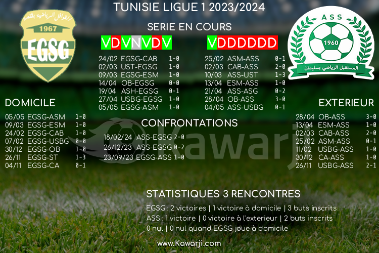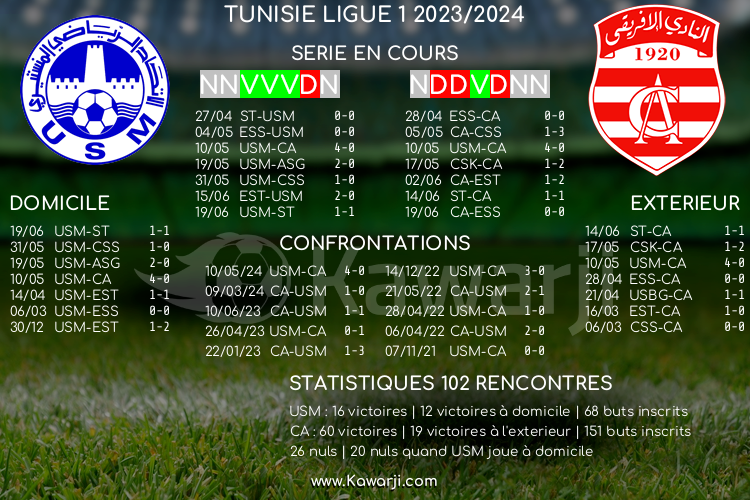 Avant les rencontres prévues ce vendredi pour le compte de la 7ème journée de la phase de play-off et de la 10ème journée de la phase de play-out en Ligue 1 tunisienne 2023-2024, voici l'historique et les statistiques relatifs à ces confrontations :