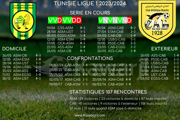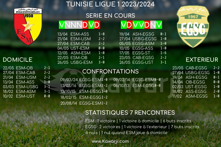 Avant les rencontres prévues ce samedi pour le compte de la 13ème journée de la phase de play-out en Ligue 1 tunisienne 2023-2024, voici l'historique et les statistiques relatifs à ces confrontations :