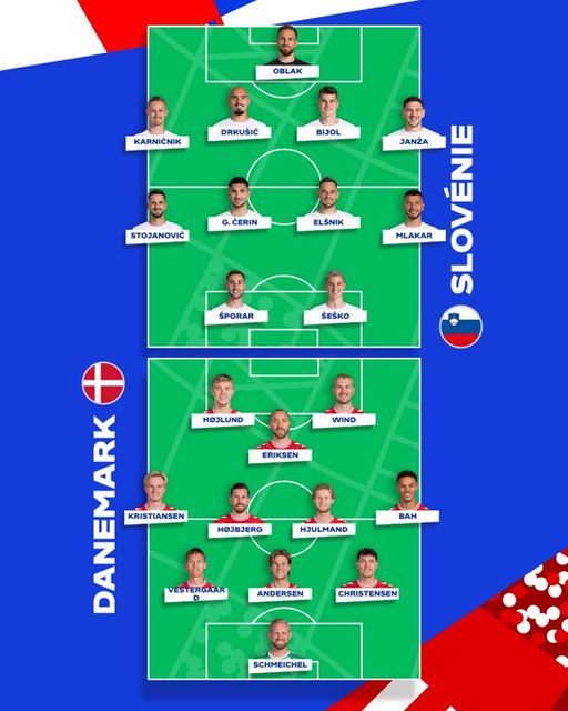 Suivez avec nous sur Kawarji à partir de 17h00 l'évolution du score du match de l'Euro 2024 entre la Slovénie et le Danemark :
