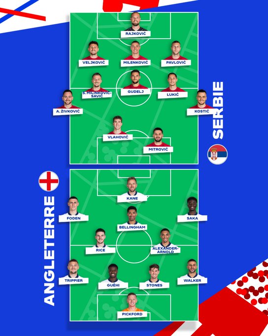 Suivez avec nous sur Kawarji à partir de 20h00 l'évolution du score du match de l'Euro 2024 entre l'Angleterre et la Serbie :