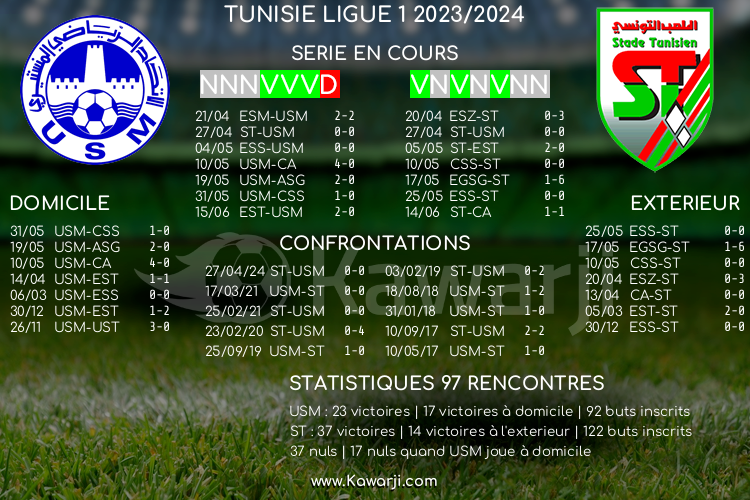 Avant les rencontres prévues ce mercredi pour le compte de la 10ème journée de la phase de play-off en Ligue 1 tunisienne 2023-2024 et de barrage, voici l'historique et les statistiques relatifs à ces confrontations :