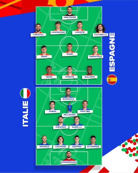 Suivez avec nous sur Kawarji à partir de 20h00 l'évolution du score du match de l'Euro 2024 entre l'Espagne et l'Italie :
