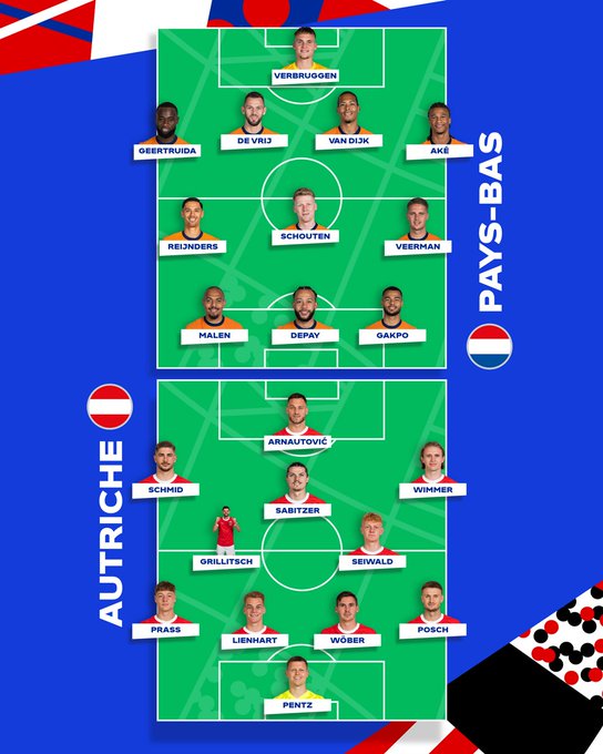 Score final : Pays-Bas 2-3 Autriche (HOL : Cody Gakpo 47 mn, Memphis Depay 78 mn /AUT : Donyell Malen (CSC) 8 mn, Romano Schmid 60 mn, Marcel Sabitzer 86 mn)