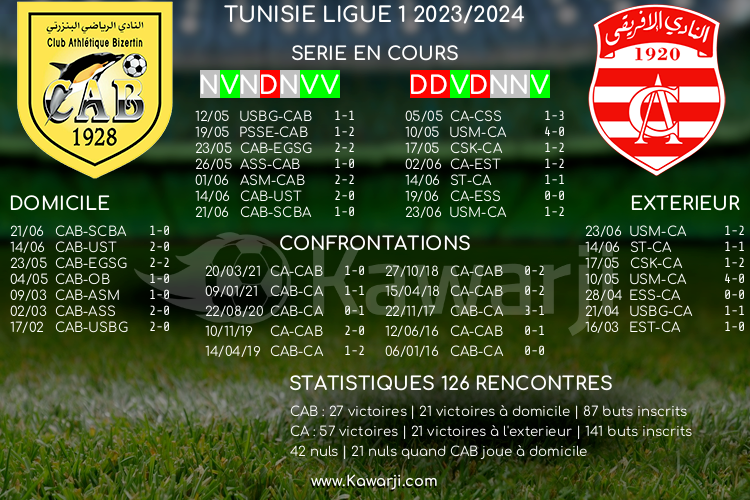 Stade 15 octobre : Club Athlétique Bizertin 17h00 Club Africain