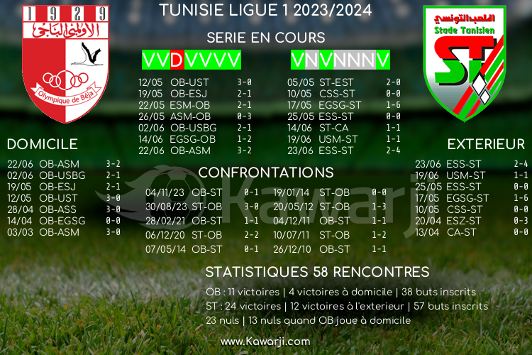 Stade Chedly Zouiten : Olympique de Béja 16h00 Stade Tunisien
