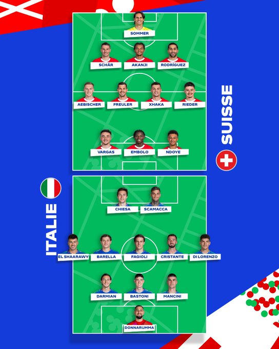 Euro 2024-Huitièmes/Suisse - Italie : Live score