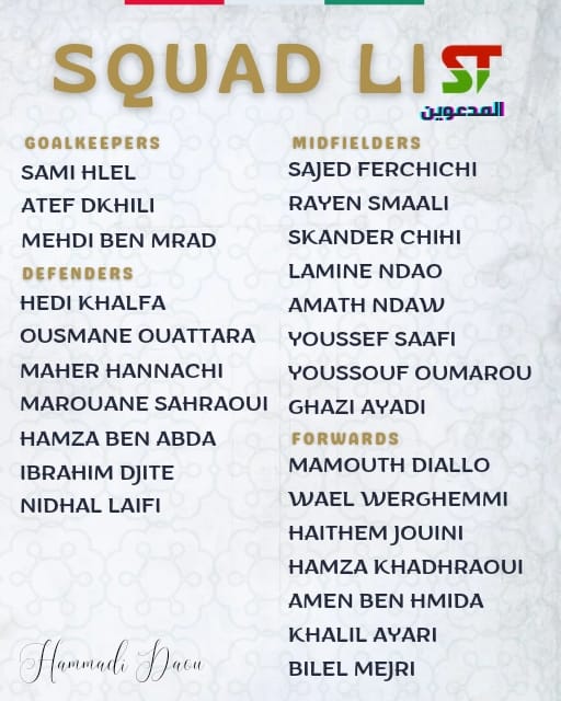 Voici la liste des joueurs du Stade Tunisien convoqués pour disputer demain au stade Hamadi Agrebi de Rades à partir de 17h00 la finale de la Coupe de Tunisie face au Club Athlétique Bizertin :