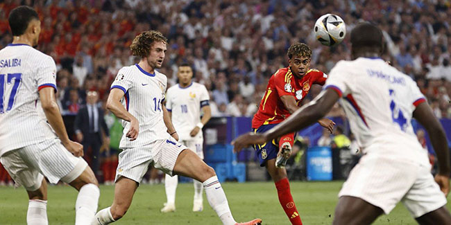 Les français ont ouvert le score par Randal Kolo Muani dès la 9ème minute, mais l'Espagne est vite revenue au score à la 21ème minute par Lamine Yamal avant de doubler le score quatre minutes plus tard par Dani Olmo.