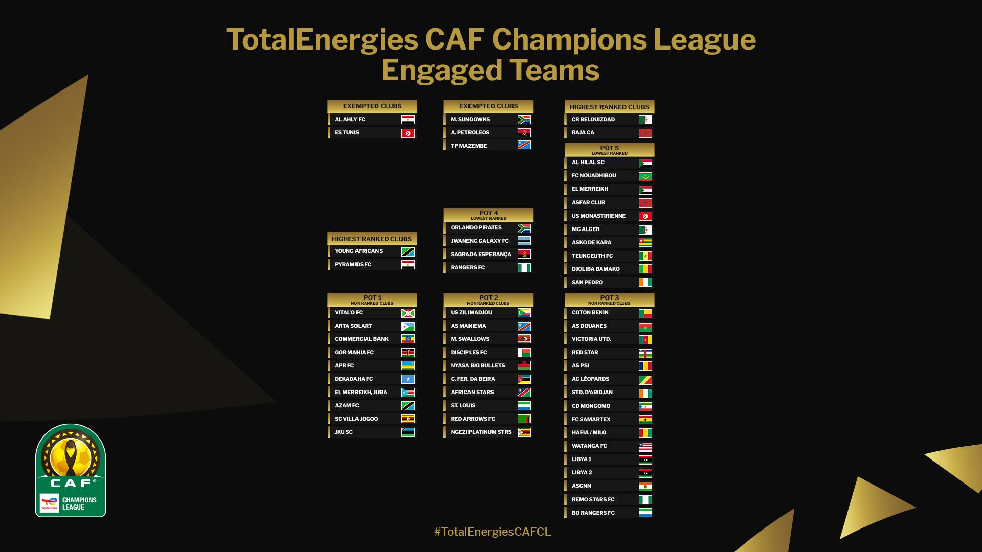 La Confédération Africaine de Football a communiqué la liste des clubs engagés en Ligue des Champions et en Coupe de la Confédération 2024-2025 :