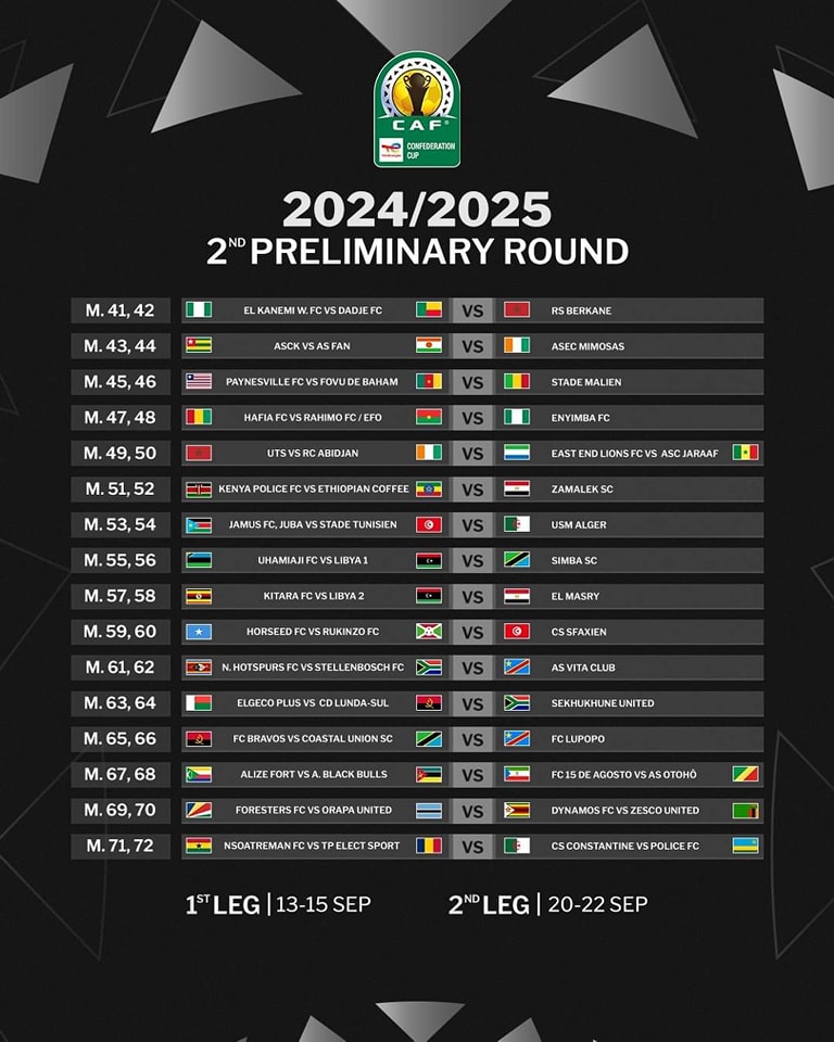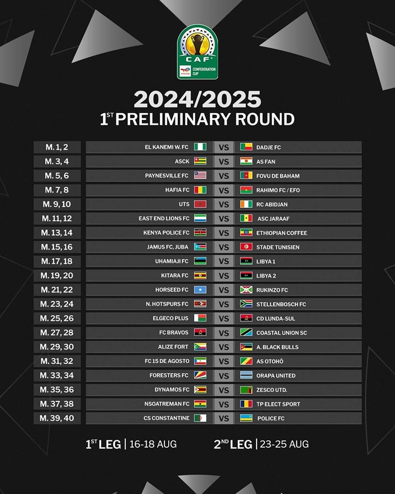 Voici les résultats complets du tirage au sort des deux premiers tours préliminaires de la Coupe de la Confédération 2024-2025 :
