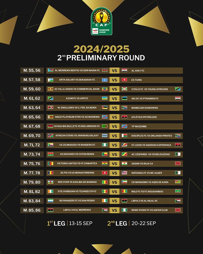 Voici les résultats complets du tirage au sort des deux premiers tours préliminaires de la Ligue des Champions africaine 2024-2025 :