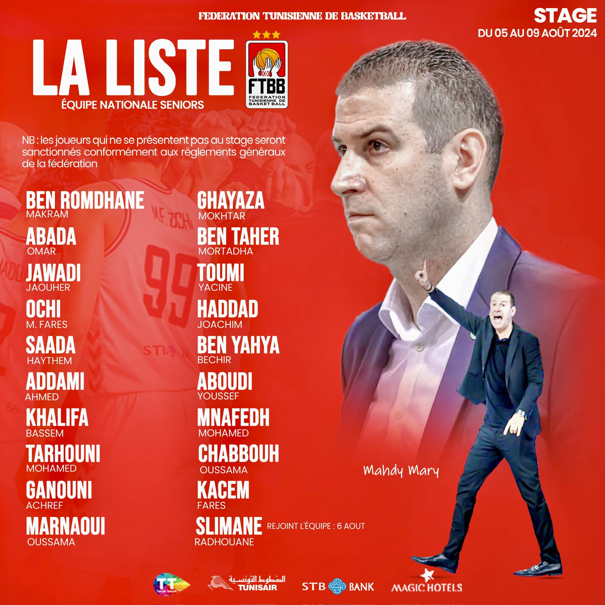 Le sélectionneur tunisien Mahdy Mary a fait appel aux joueurs suivants :