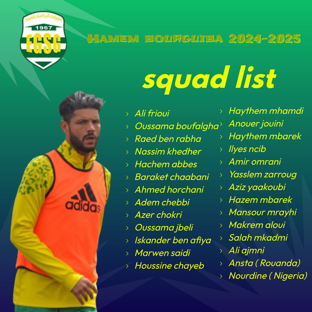 Le staff technique de l'EGS Gafsa a communiqué la liste des joueurs convoqués pour le stage de préparation à Hammam-Bourguiba qui débute aujourd'hui :