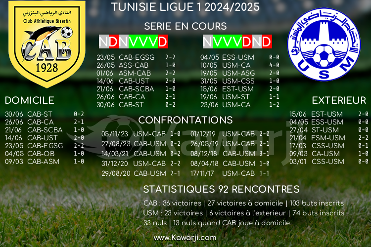 Avant les rencontres prévues ce dimanche pour le compte de la 1ère journée de Ligue 1 tunisienne 2024-2025, voici l'historique et les statistiques relatifs à ces confrontations :