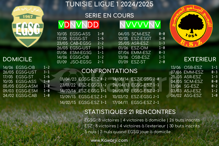 Avant les rencontres prévues ce samedi pour le compte de la 2ème journée de Ligue 1 tunisienne 2024-2025, voici l'historique et les statistiques relatifs à ces confrontations :