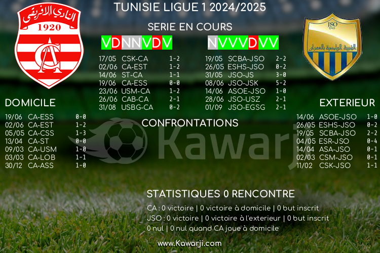 Avant la rencontre prévue ce dimanche entre le Club Africain et la JS Omrane pour le compte de la 2ème journée en Ligue 1 tunisienne 2024-2025, voici l'historique et les statistiques relatifs à cette confrontation :
