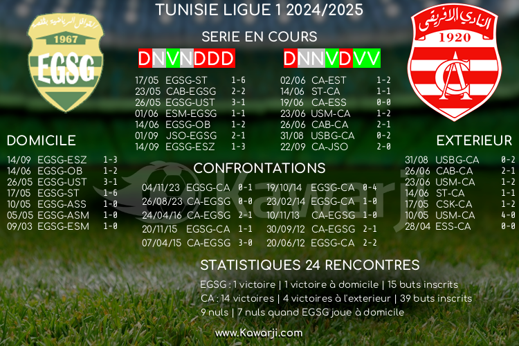 Avant les rencontres prévues ce samedi pour le compte de la 3ème journée de Ligue 1 tunisienne 2024-2025, voici l'historique et les statistiques relatifs à ces confrontations :