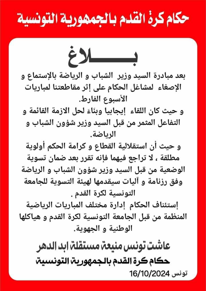 Les arbitres ont décidé aujourd'hui de mettre fin à leur grève.