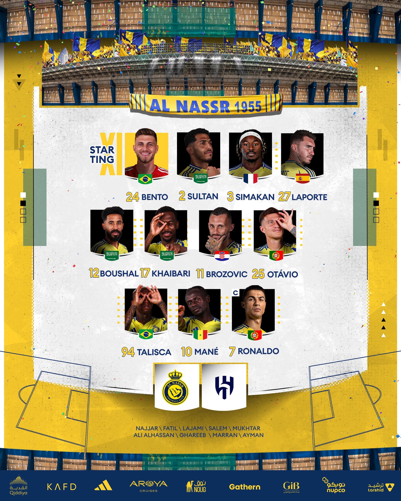 Suivez avec nous sur Kawarji à partir de 19h00 l'évolution du score du match de la Saudi Pro League entre Al Nassr et Al Hilal :