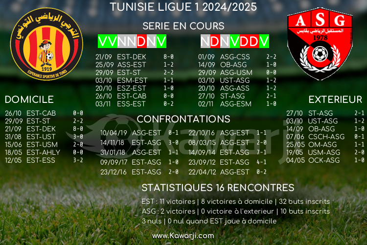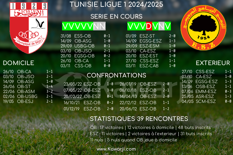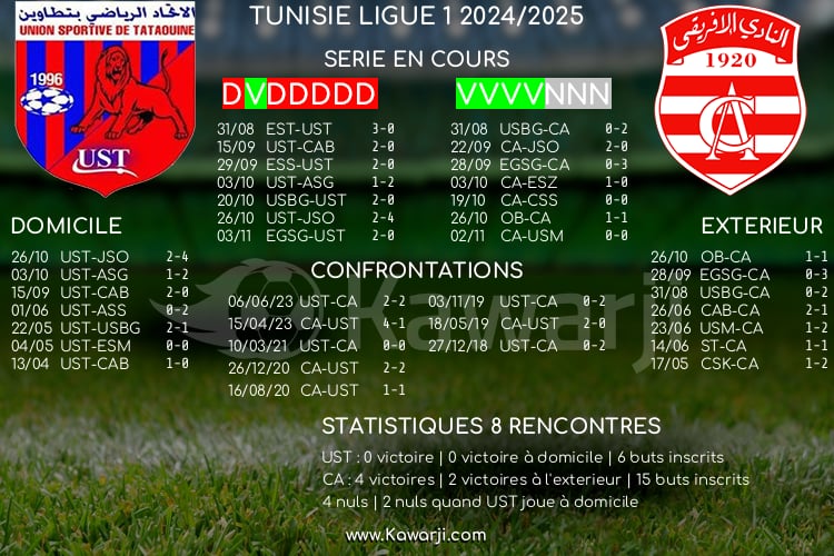 Avant les rencontres prévues ce samedi pour le compte de la 8ème journée de Ligue 1 tunisienne 2024-2025, voici l'historique et les statistiques relatifs à ces confrontations :