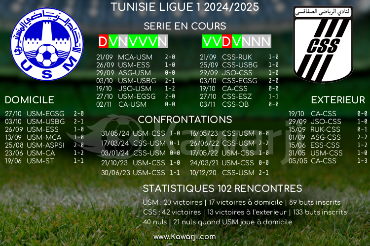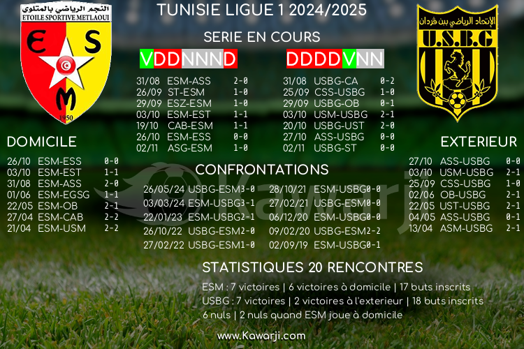 Avant les rencontres prévues ce dimanche pour le compte de la 8ème journée de Ligue 1 tunisienne 2024-2025, voici l'historique et les statistiques relatifs à ces confrontations :