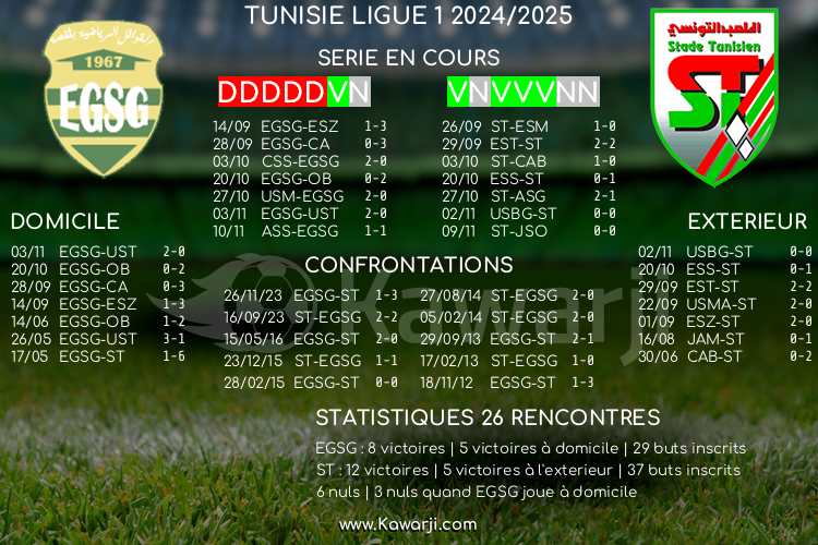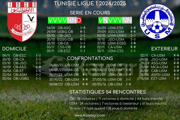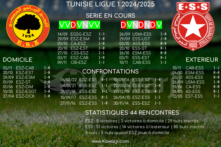Avant les rencontres prévues ce dimanche pour le compte de la 9ème journée de Ligue 1 tunisienne 2024-2025, voici l'historique et les statistiques relatifs à ces confrontations :