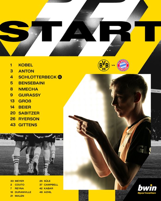 Score final : Borussia Dortmund 1-1 Bayern Munich (DOR : Jamie Gittens 27 mn / BAY : Jamal Musiala 85 mn)