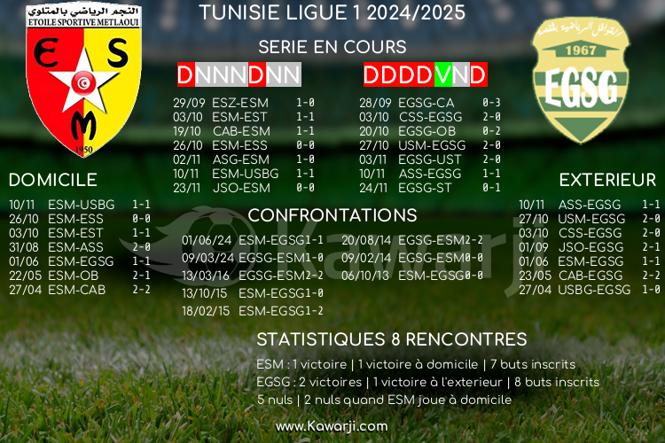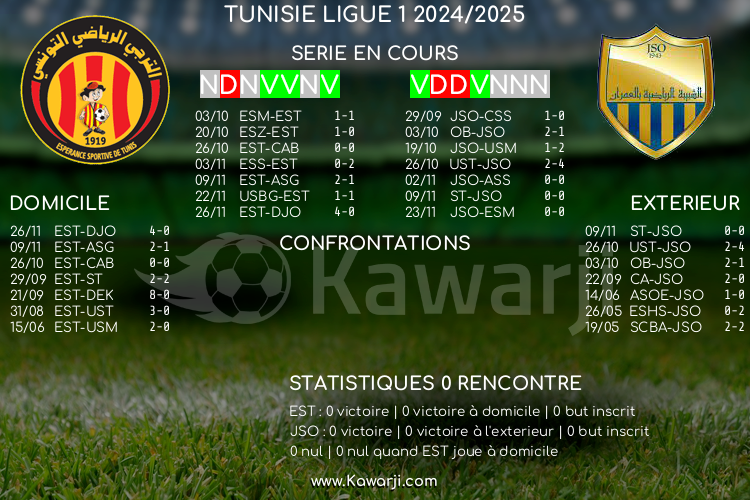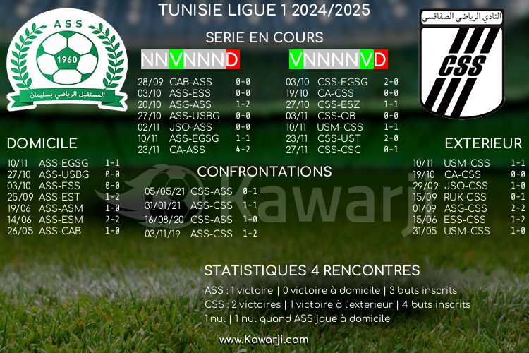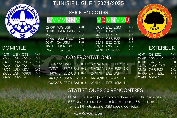 Avant les rencontres prévues ce dimanche pour le compte de la 10ème journée de Ligue 1 tunisienne 2024-2025, voici l'historique et les statistiques relatifs à ces confrontations :