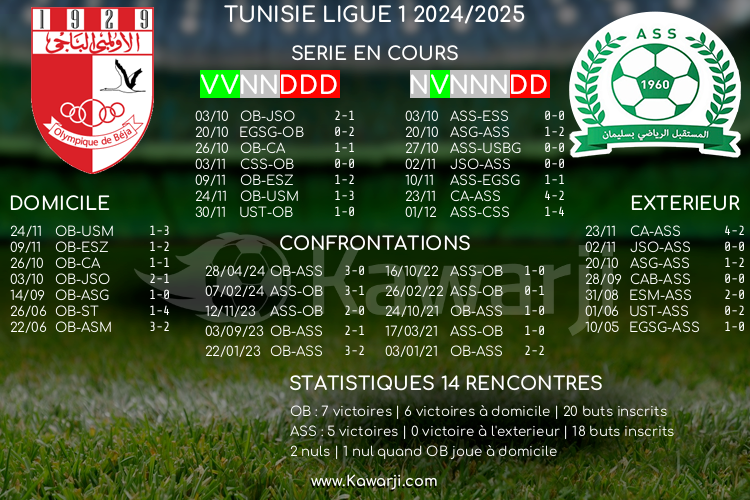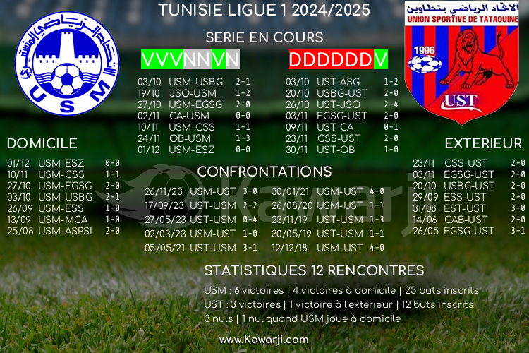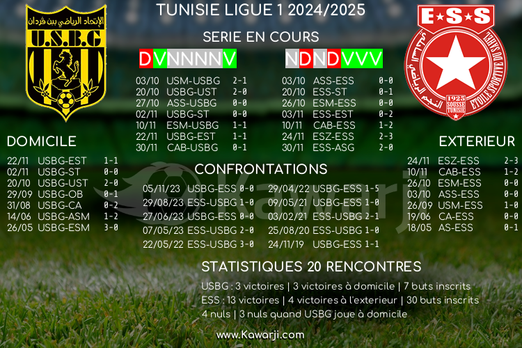 Avant les rencontres prévues ce dimanche pour le compte de la 11ème journée de Ligue 1 tunisienne 2024-2025, voici l'historique et les statistiques relatifs à ces confrontations :
