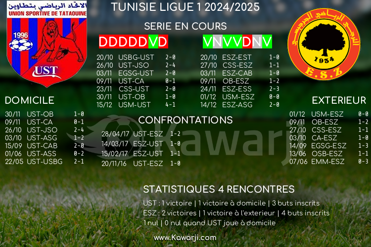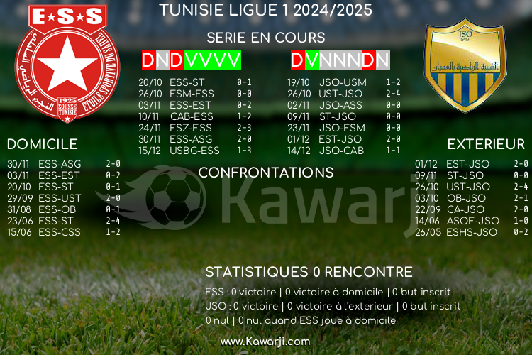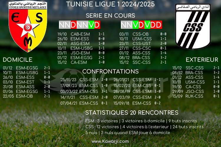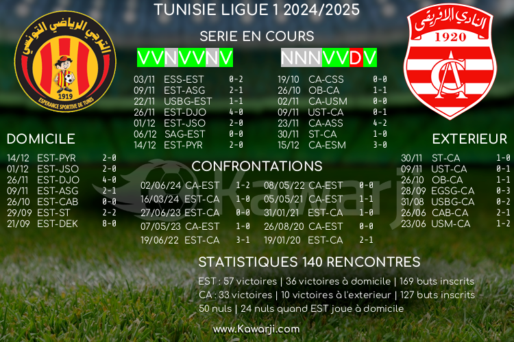 Avant les rencontres prévues ce dimanche pour le compte de la 12ème journée de Ligue 1 tunisienne 2024-2025, voici l'historique et les statistiques relatifs à ces confrontations :