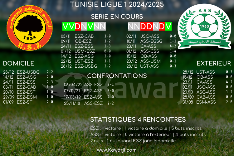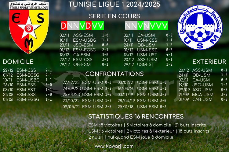 Avant les rencontres prévues ce samedi pour le compte de la 14ème journée de Ligue 1 tunisienne 2024-2025, voici l'historique et les statistiques relatifs à ces confrontations :