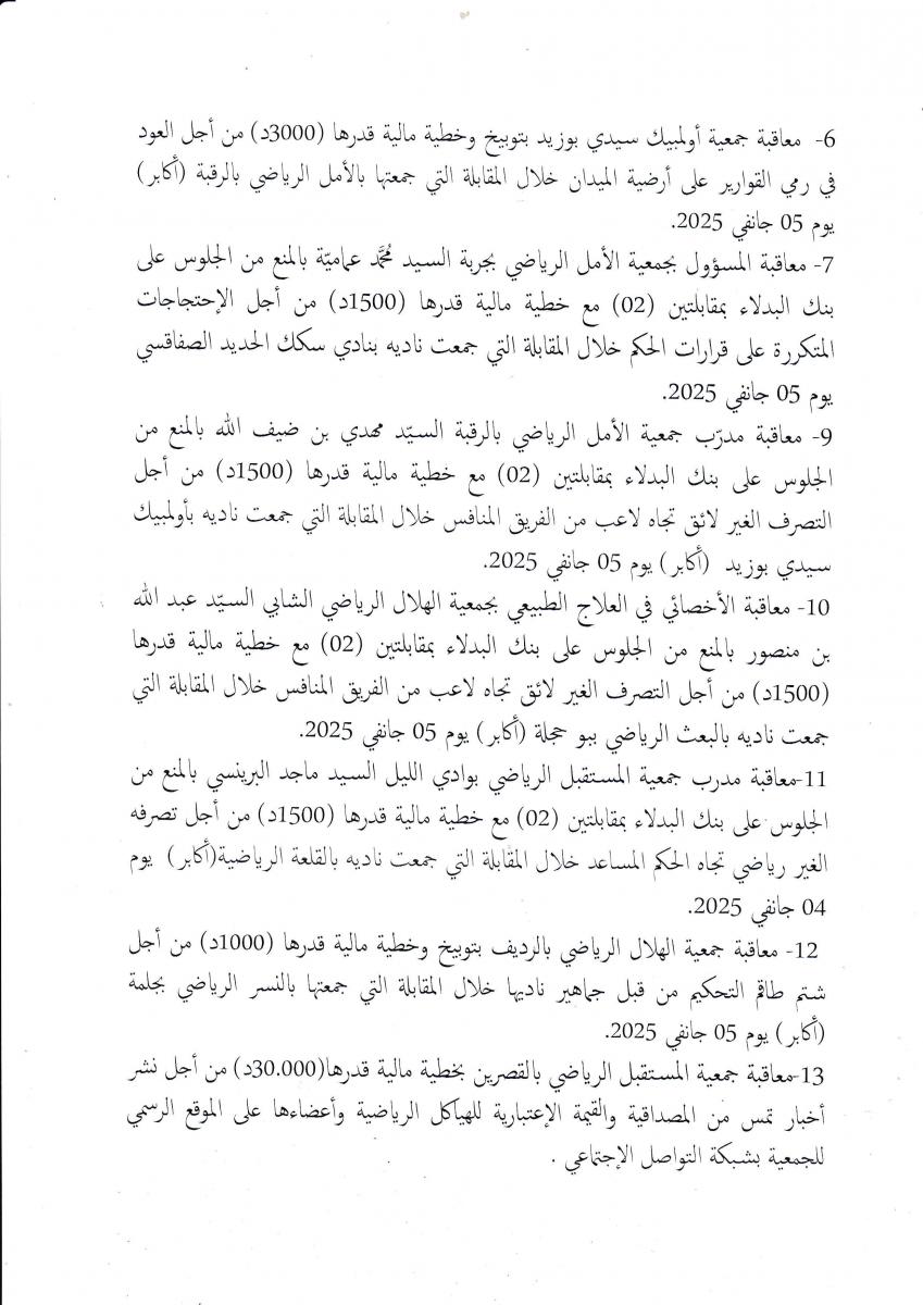 Hier, la formation de Kasserine avait écopé d'une lourde amende de 30 mille dinars à cause de publications sur sa page officielle jugées touchant à l'intégrité des instances sportives.
