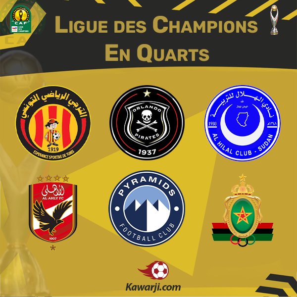 Voici la liste des clubs qualifiés dans chaque groupe en quarts de finale de la Ligue des Champions CAF à l'issue des matches de la 5ème journée :