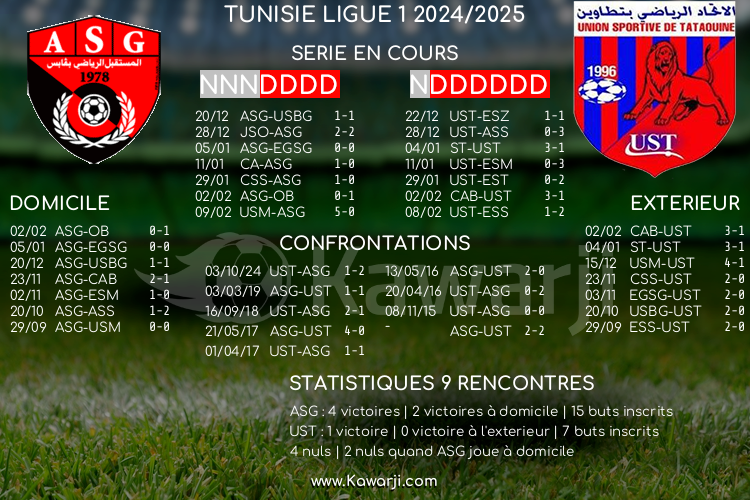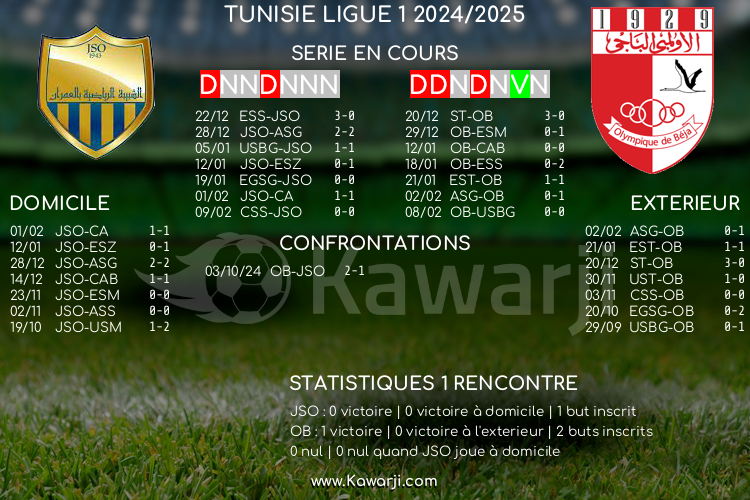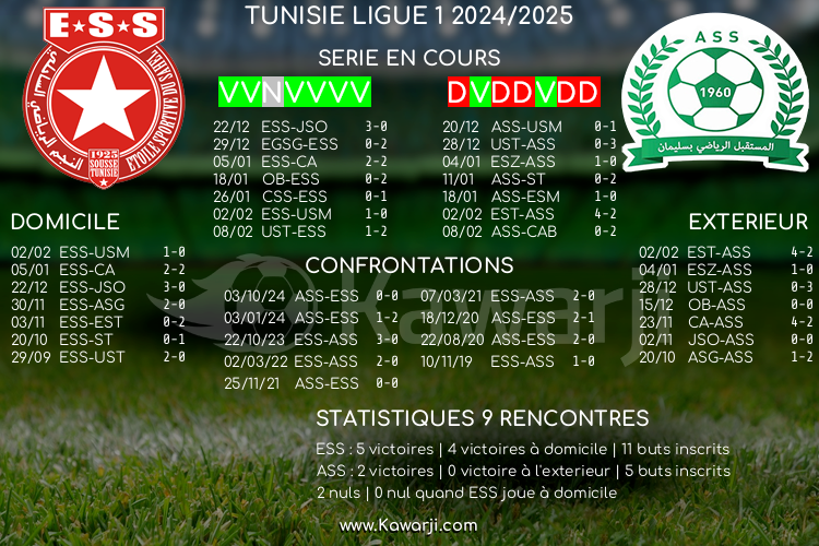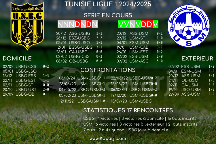 Avant les rencontres prévues ce jeudi pour le compte de la 19ème journée de Ligue 1 tunisienne 2024-2025, voici l'historique de ces confrontations :