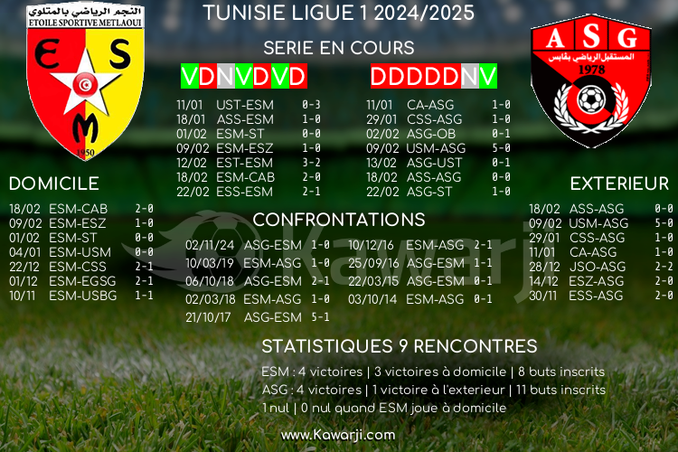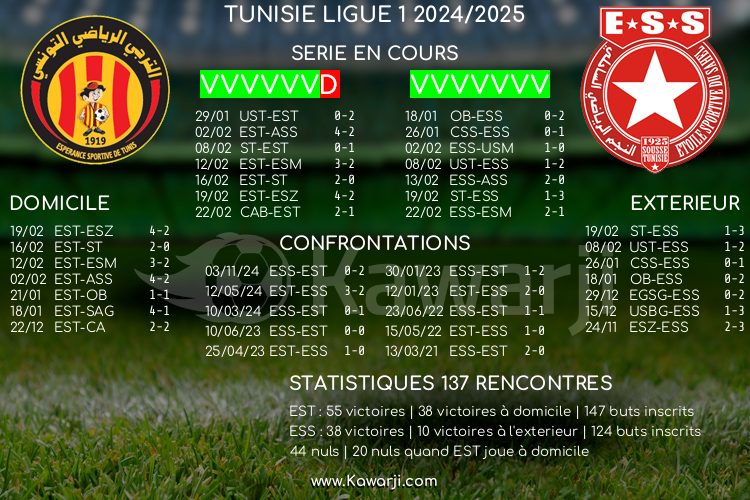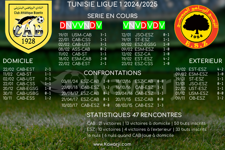 Avant les rencontres prévues ce mercredi pour le compte de la 22ème journée de Ligue 1 tunisienne 2024-2025, voici l'historique de ces confrontations :