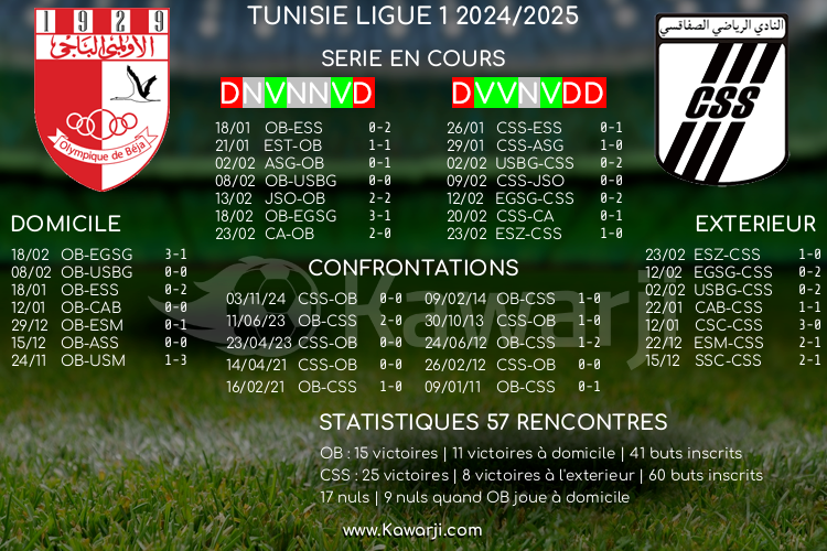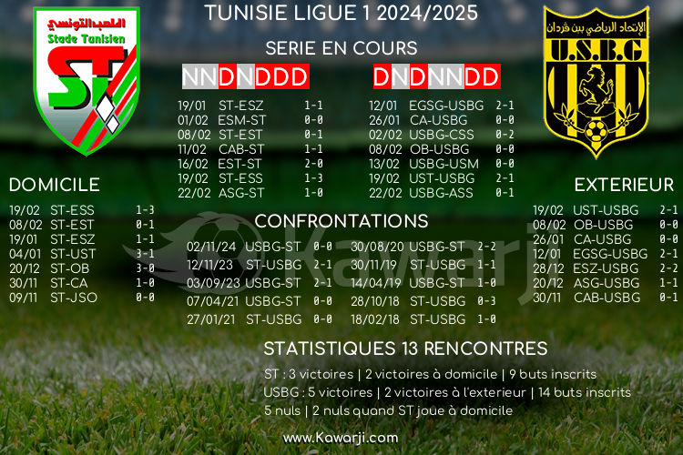 Avant les rencontres prévues ce jeudi pour le compte de la 22ème journée de Ligue 1 tunisienne 2024-2025, voici l'historique de ces confrontations :