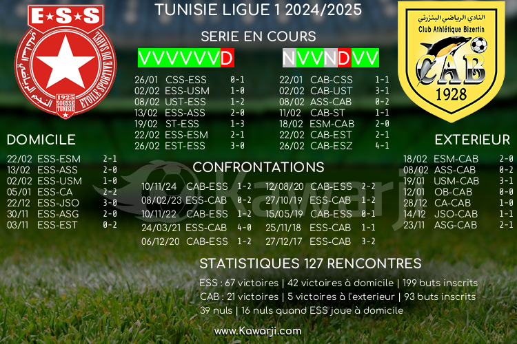 Etoile Sportive du Sahel 14h00 Club Athlétique Bizertin