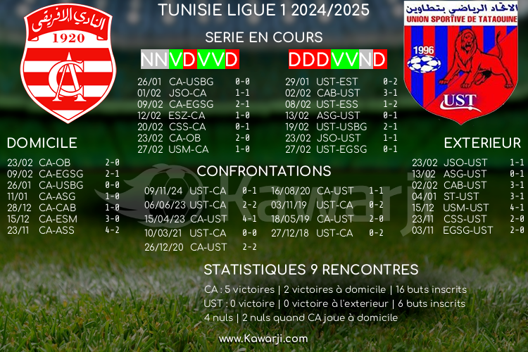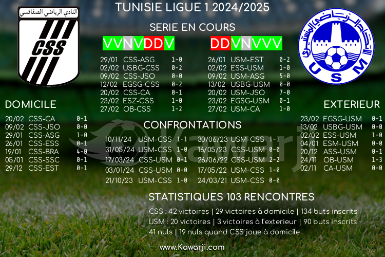 Avant les rencontres prévues ce dimanche pour le compte de la 23ème journée de Ligue 1 tunisienne 2024-2025, voici l'historique de ces confrontations :