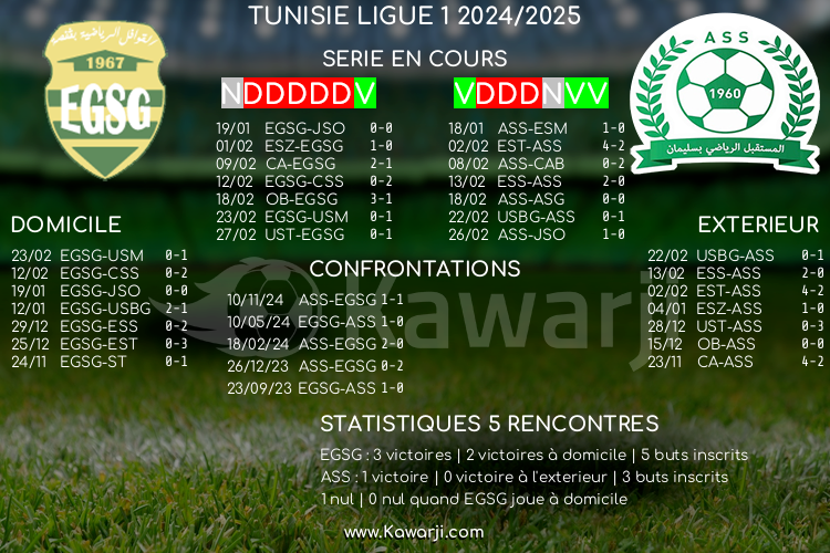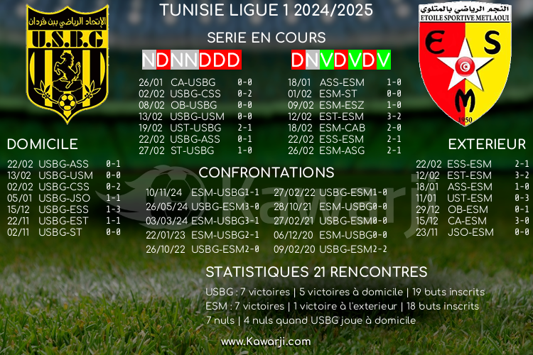 Avant les rencontres prévues ce lundi pour le compte de la 23ème journée de Ligue 1 tunisienne 2024-2025, voici l'historique de ces confrontations :