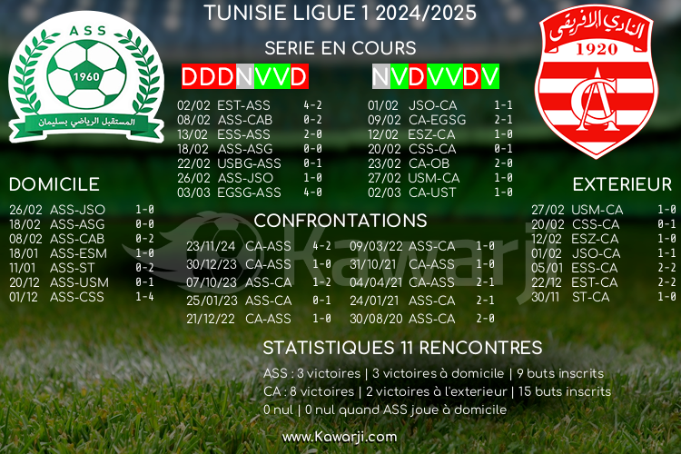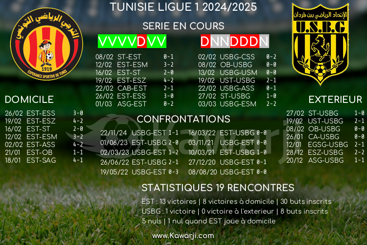 Avant les rencontres prévues ce samedi pour le compte de la 24ème journée de Ligue 1 tunisienne 2024-2025, voici l'historique de ces confrontations :