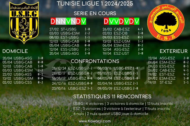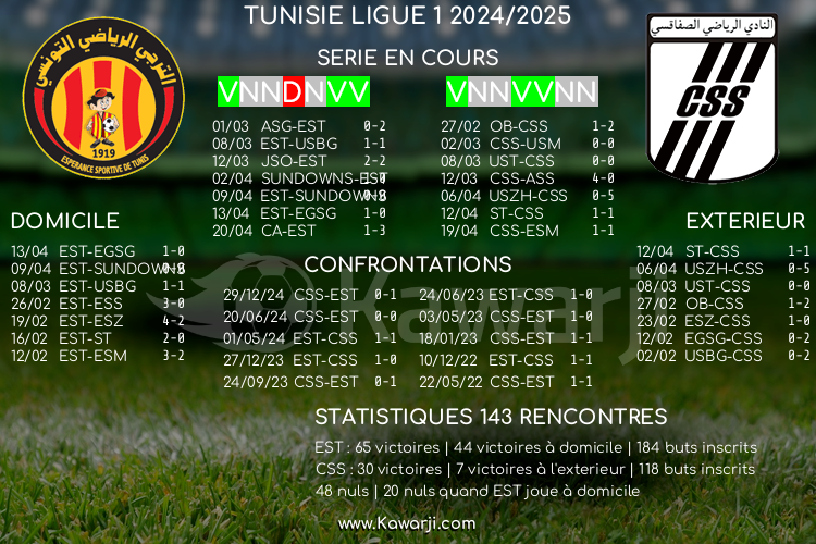 Avant les rencontres prévues ce samedi pour le compte de la 28ème journée de Ligue 1 tunisienne 2024-2025, voici l'historique de ces confrontations :